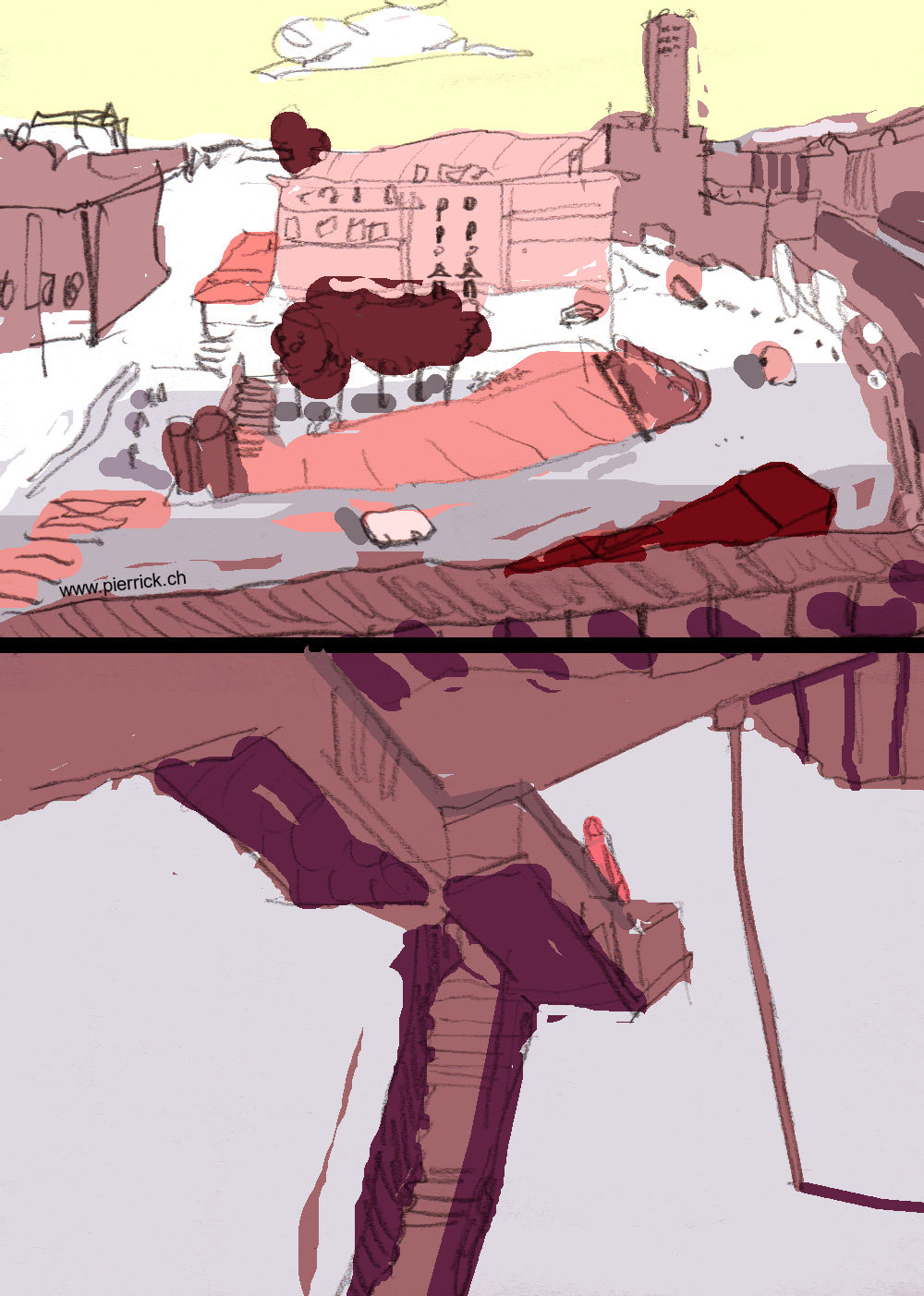 A gouache, vaguely inspired by a photography.